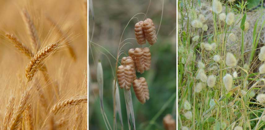 Les graminées : Blé, Briza maxima et Queue de lièvre