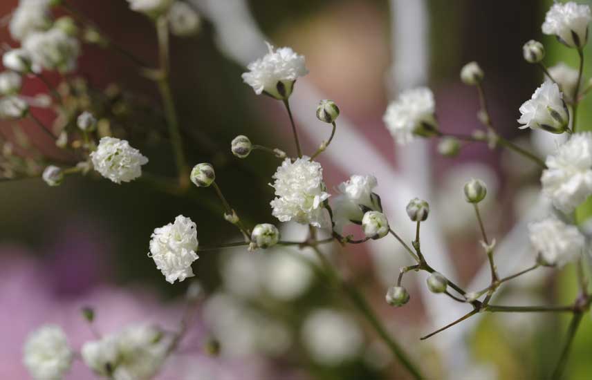 Très apprécié des fleuristes, le Gypsophile l’est aussi des amateurs de fleurs séchées. Il forme un fin brouillard aussi doux que le souffle d’un bébé (c’est d’ailleurs ainsi qu’on l’appelle outre atlantique). Sa silhouette nuageuse accompagne à merveille les plantes plus raides et met en valeur celles sélectionnées pour leurs fruits décoratifs.