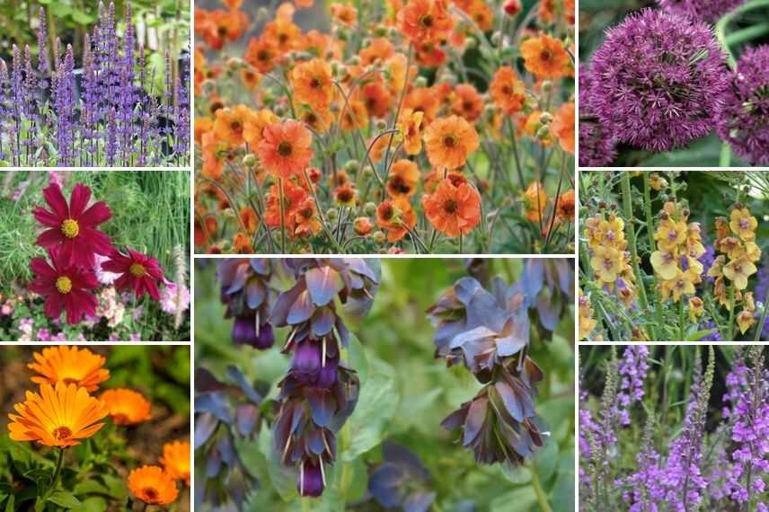 Mariez des benoîtes orange à des sauges aux épis violacés. Ajoutez des linaires, des molènes, des cosmos couleur carmin, des soucis pour donner la réplique aux benoîtes, des aulx d’ornement, sans oublier de jolies cérinthes que vous laisserez se ressemer.
