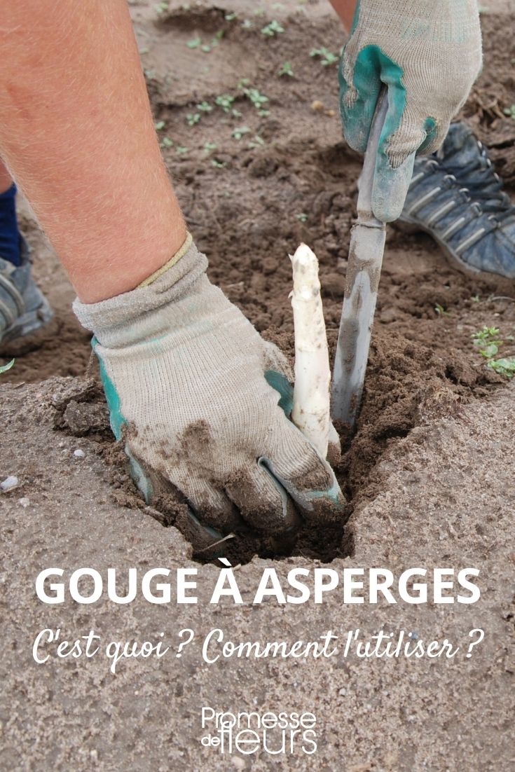 Une gouge à asperge est un outil de jardin, initialement conçu pour la culture des asperges. Une gouge à asperges possède un manche court (souvent en bois) et une longue lame étroite et affûtée sur l’extrémité. La tête doit être solide et forgée en acier, souvent traité au bore. L’outil à manche court obligera le jardinier à travailler accroupi au jardin ou debout pour l’entretien des plantations surélevées comme les carrés potagers ou encore les bacs à fleurs.