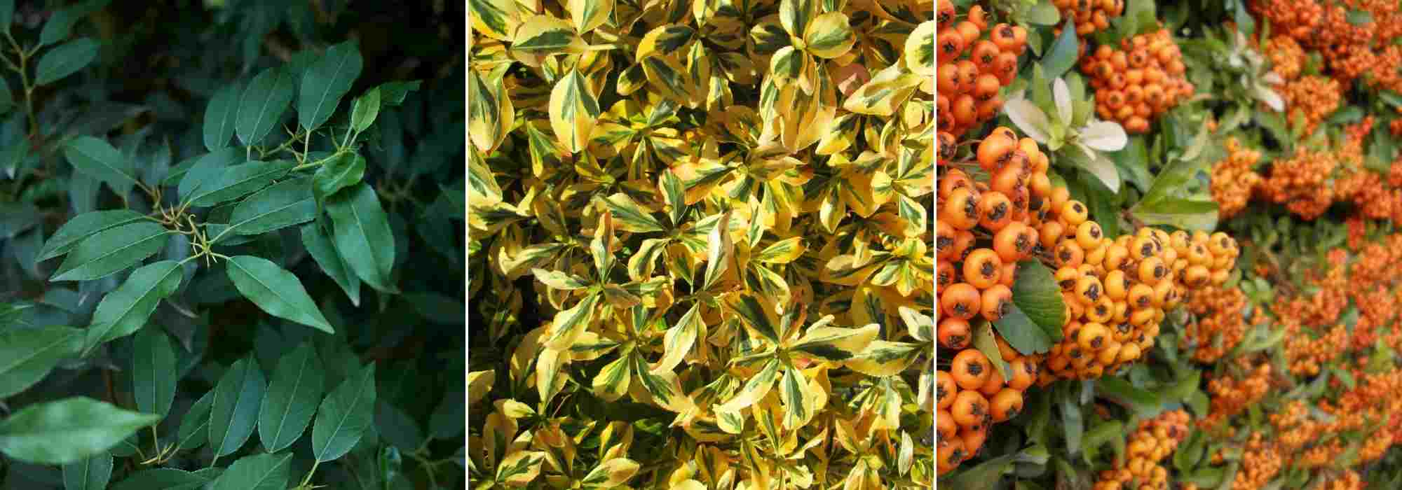 De nombreuses essences persistantes sont bien résistantes au vent : Prunus lusitanica, Fusain, et le Pyracantha aux baies colorées l’hiver