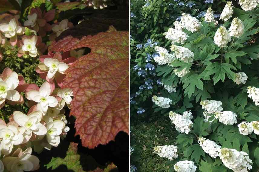 Hydrangea quercifolia en automne(© Wendy Cutler), et Hydrangea quercifolia ‘Alice’ (© Cultivar 413)