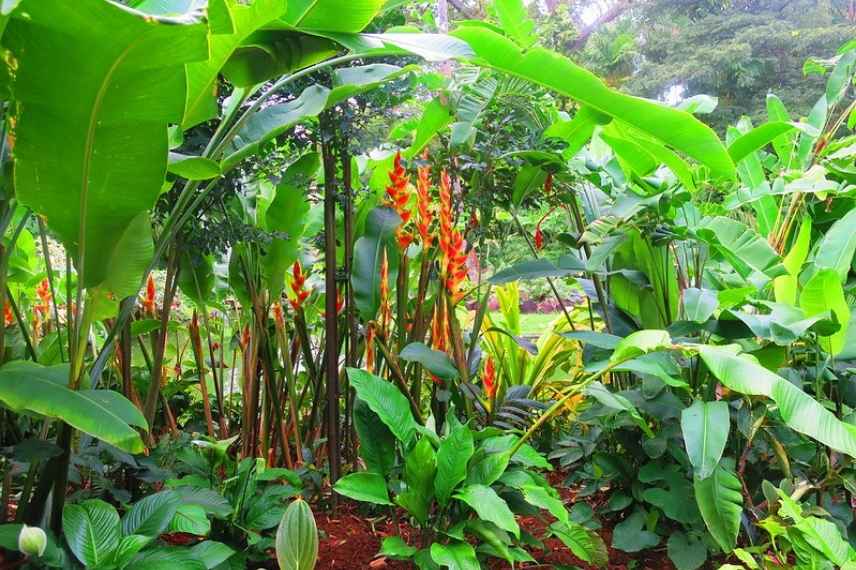- Certaines plantes tropicales demandent de l’espace : estimez votre projet dans ses dimensions et sélectionnez les plantes dont vous raffolez : vous n’installerez pas la même quantité de végétaux imposants dans un jardin de ville que dans un grand jardin !
