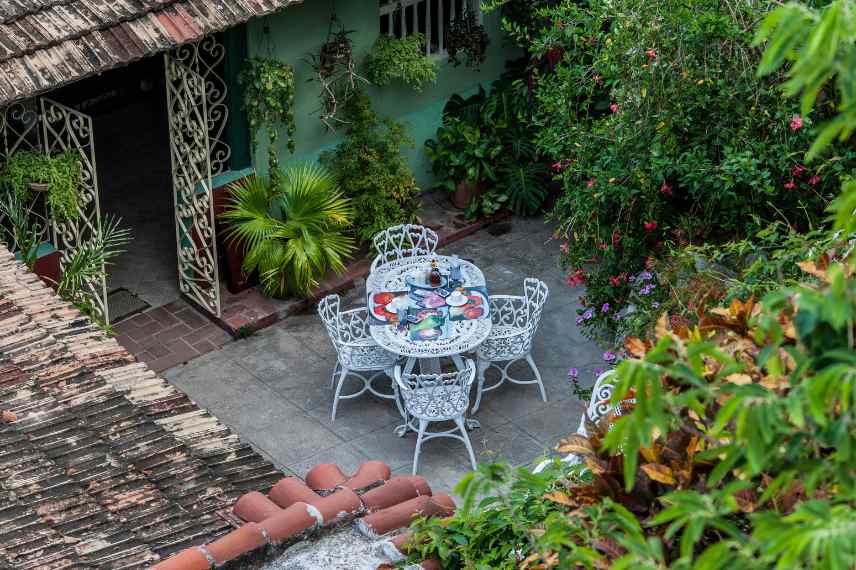 Qu’il s’agisse d’un patio verdoyant ou d’un grand jardin, on peut enfin inviter le fer forgé dans un jardin de type exotique, il ajoutera un charme colonial à l’atmosphère, en rajoutant des couleurs vert menthe, rose ou orangé pour encore plus d’évasion.