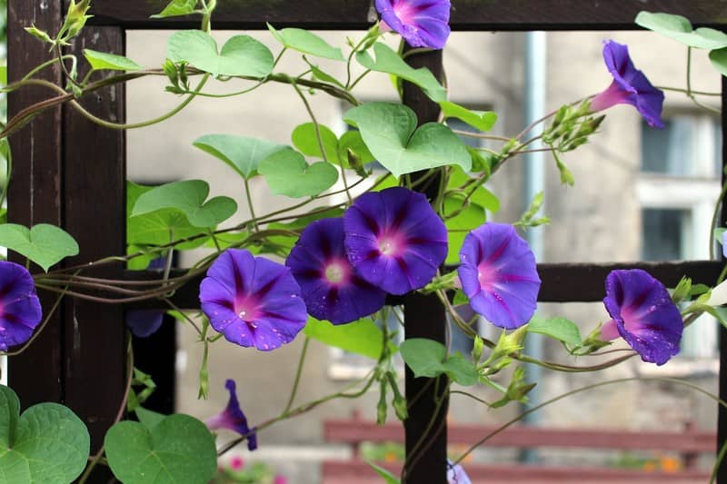 - des tiges volubiles qui grimpent jusqu’à 3m et produisent des fleurs,