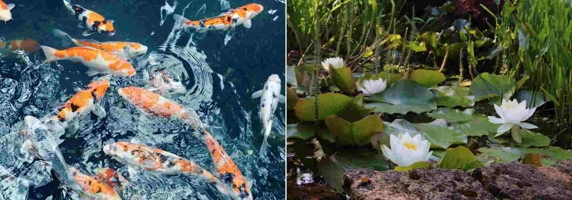 - Réduisez la quantité de poisson et de nourriture : un poisson rouge nécessite au moins 60 litres d’eau pour bien vivre… et près d’un mètre cube pour une carpe koï ! Il n’est pas rare de voir des bassins complétement surpeuplés de poissons. L’apport de nourriture enrichi et sature l’eau en nutriments (phosphates et nitrates). Ces derniers font exploser les populations d’algues. Vous devez donc calculer le volume d’eau et la quantité de poissons que votre mare pourra accueillir. Evitez de trop les nourrir : toute nourriture non consommée enrichira encore davantage l’eau de la mare.