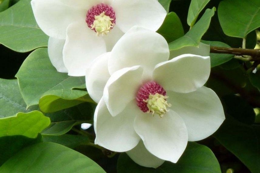 Le Magnolia sieboldii forme un ravissant petit arbre caduc, atteignant 5 m de hauteur pour 4 m d’envergure, idéal pour un jardin de taille modeste ou de taille moyenne. Sa croissance lente permet également la culture en pot. Ses branches, au port étalé, se couvrent de mai à juillet de splendides fleurs blanches à cœur pourpre et au délicat parfum d’agrume. Durant l’été, il s’habille d’un joli feuillage vert moyen. Le Magnolia sieboldii apprécie une exposition à la mi-ombre, dans un sol léger, frais et humifère, mais ne supporte pas bien le calcaire. Rustique, il pourra supporter des gelées allant jusqu’à -15 °C.