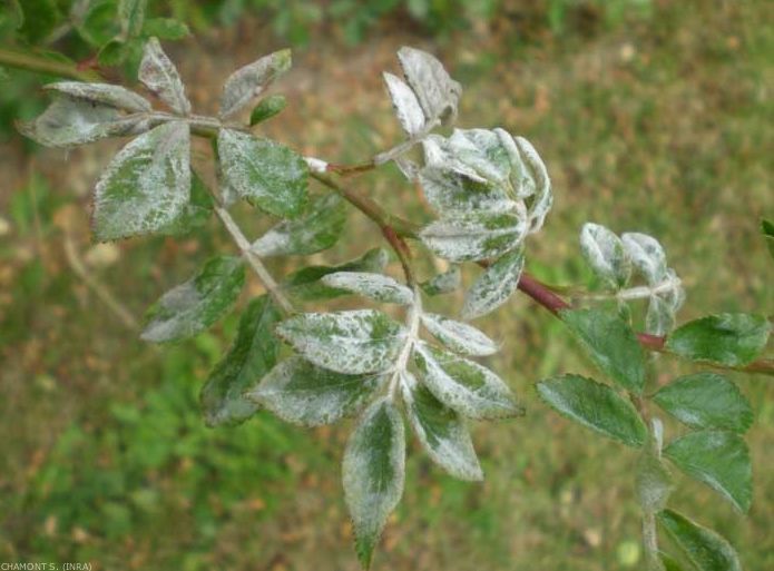 Un feutrage blanc grisâtre, d’aspect farineux, tapisse les feuilles, les nouvelles pousses et les boutons floraux. En cas de forte attaque, les tiges tendres et les bourgeons se déforment. Les rosiers peuvent être affaiblis et leur floraison diminuée.