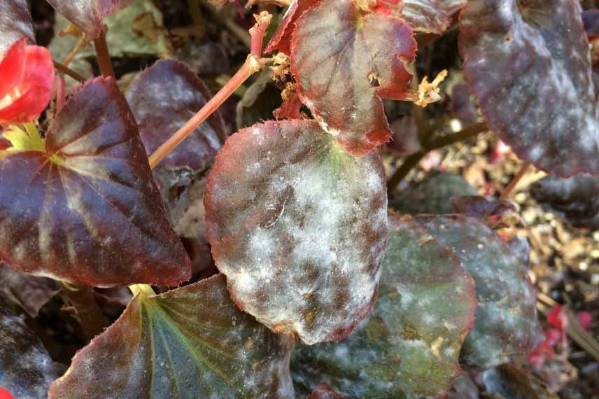 Un bégonia atteint par l’oïdium (photo : Scot Nelson)