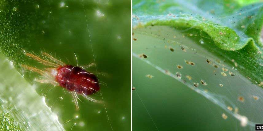 Aussi appelées tétranyques tisserands, les araignées rouges sont de petits acariens difficiles à observer à l’œil nu, qui s’installent sur les feuilles et tiges, et piquent les tissus pour prélever la sève.