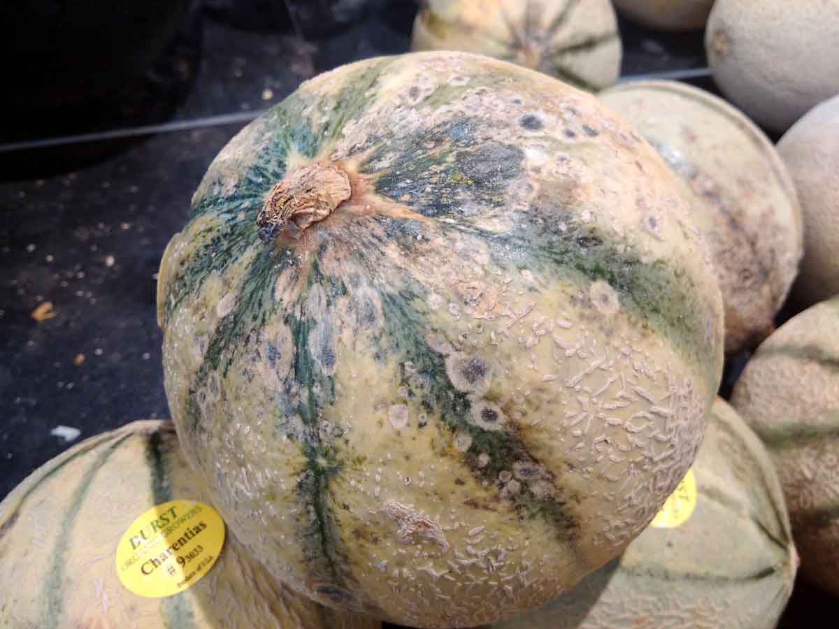 Des taches brunes ou noires entourées d’un cercle plus clair apparaissent sur les feuilles. Ces taches se propagent ensuite sur les fruits, elles deviennent noires et se creusent. Les melons finissent par pourrir.