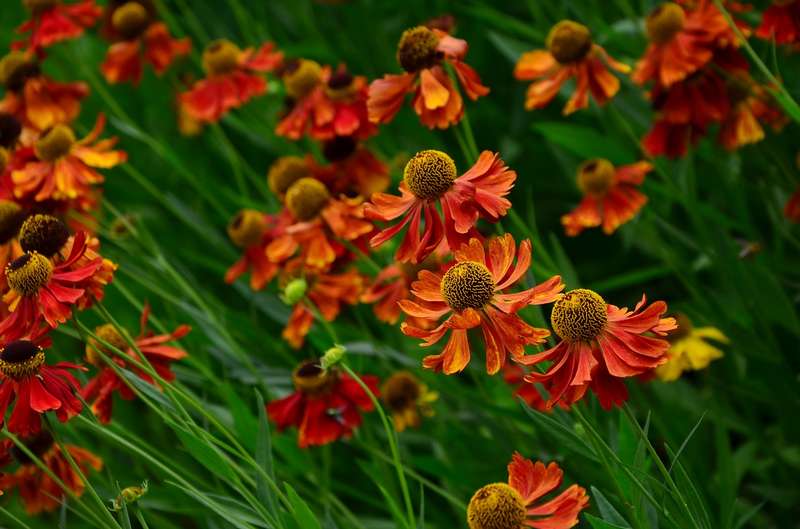 Les butineurs aiment se poser sur les cœurs poudrés de jaune des Hélénies d’automne. La floraison a lieu de juillet à octobre selon les variétés. Ce sont des plantes de culture facile qui devraient être plus répandues dans les jardins.