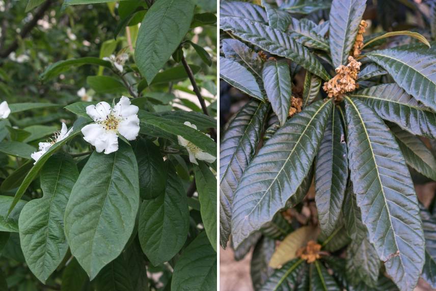 À gauche, le néflier commun, à droite, le néflier du Japon