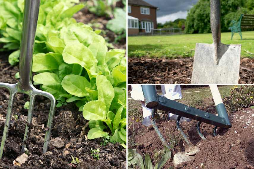Présentation et utilisation des outils pour préparer la terre du jardin