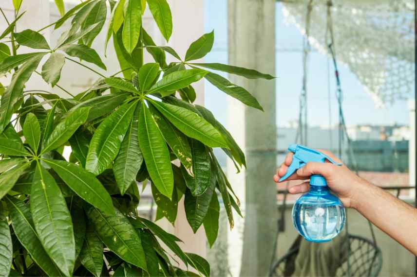 Puisqu’il s’agit d’une plante tropicale, le Pachira apprécie de bénéficier d’une bonne hygrométrie. Vous pouvez brumiser le feuillage en été pour lui apporter de l’humidité ambiante. Profitez-en aussi pour dépoussiérer les feuilles à l’aide d’un chiffon légèrement humidifié, afin de favoriser la photosynthèse. C’est aussi le moment de vérifier l’absence de parasites (pucerons, cochenilles, thrips…) ou de maladies (taches foliaires).
