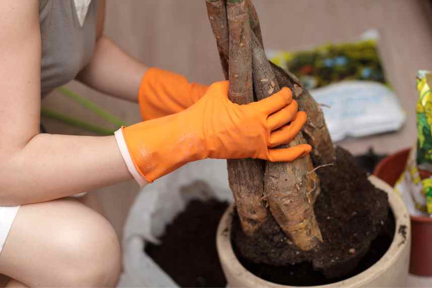 C’est aussi la période idéale pour effectuer un rempotage qui a lieu tous les 2 à 3 ans. Si le Pachira peut atteindre près de 20 mètres de hauteur dans son milieu d’origine, il se contente généralement de 2 à 3 mètres en intérieur. Si son pot devient trop étroit (racines qui sortent par les trous de drainage ou au-dessus du substrat), c’est qu’il est temps de le rempoter dans un contenant de taille supérieure. Choisissez toujours un modèle troué, afin que l’eau en excès puisse s’écouler sans stagner dans les racines. Utilisez un substrat bien drainé et aéré : vous pouvez utiliser du terreau spécial plantes d’intérieur ou du terreau polyvalent mélangé à des éléments drainants (billes d’argile, sable de rivière, graviers, etc.). Pensez aussi à installer une couche drainante au fond du contenant. Les années sans rempotage, effectuez simplement un surfaçage, en remplaçant les 3 premiers centimètres de terre par du terreau neuf.
