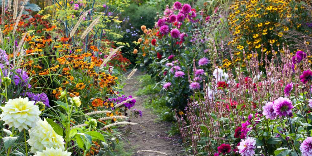 Composez une bordure de chemin colorée et vivante, en associant des plantes à floraison automnale dans des tons chauds et lumineux ! Profitez de la floraison éclatante des Dahlias, des Heleniums et des Phlox ‘Alpha’ ! Les épis délicats de la graminée Pennisetum incomptum répondent à ceux de Persicaria amplexicaulis, apportant poésie et légèreté. Ils permettent d’adoucir les floraisons vives des dahlias et héléniums.