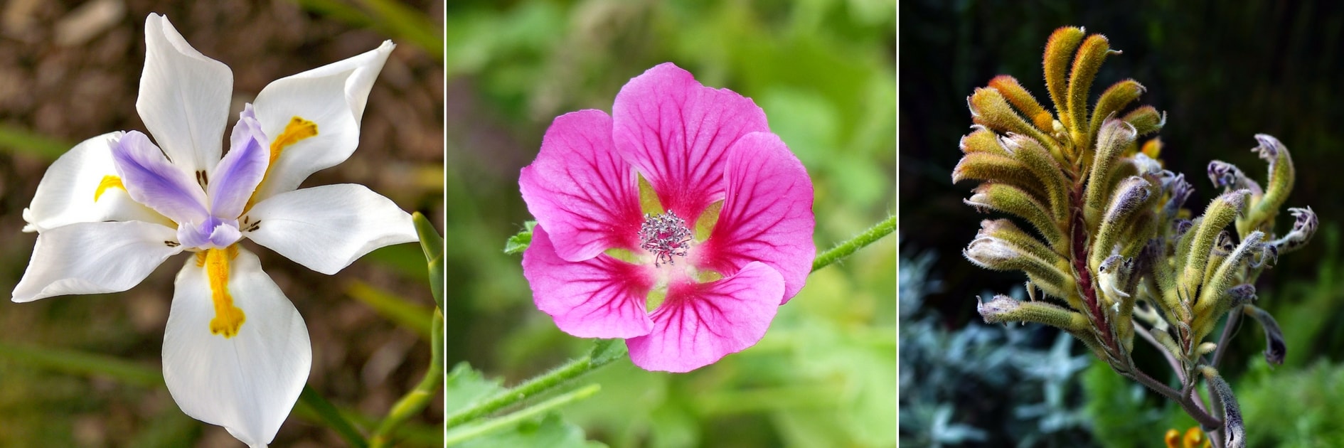 Dietes grandiflora, Anisodontea capensis ‘El Rayo’ et Anigozanthos