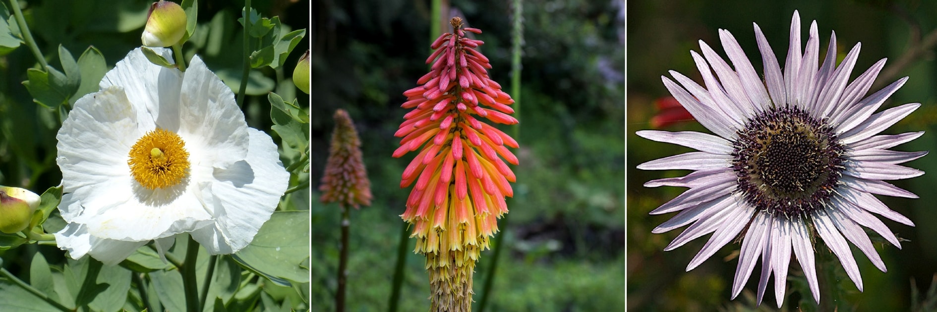 Romneya coulteri, Kniphofia et Berkheya purpurea