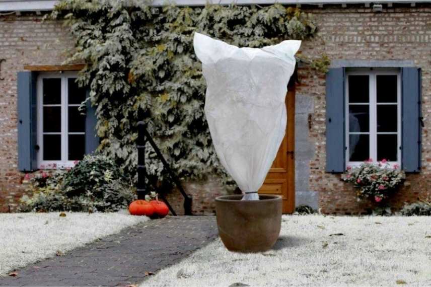 Anticipez les températures qui franchissent le seuil fatidique des -5°C en emmaillotant les parties aériennes : le voile d’hivernage se positionne en prenant le soin de multiplier les couches, et de fermer correctement le haut, en ne comprimant pas les tiges. Une toile de jute peut également venir isoler la partie supérieure de la plante. N’oubliez pas d’ouvrir les toiles par le haut lors de journées clémentes, pour aérer la plante et ne surtout pas provoquer de condensation autour de ses feuilles.
