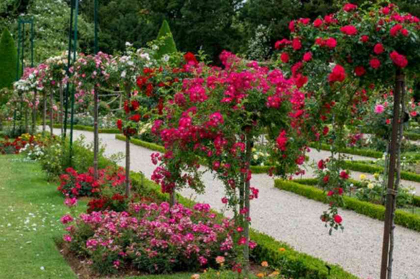 Rosiers tiges et pleureurs au Parc de Bagatelle (Photo C. Noël)