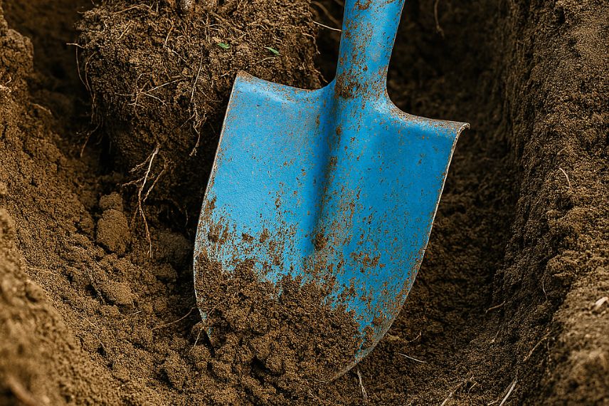 - Faites levier avec votre bêche ou votre souchet, en faisant peu à peu le tour de la plante. Le but est de récupérer les racines avec un maximum de terre.