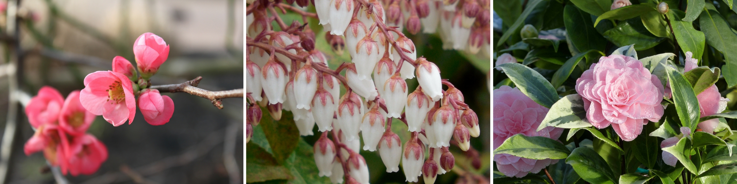 Cognassier du Japon ‘Pink Lady’ – Pieris – Camelia Japonica ‘Kerguelen’
