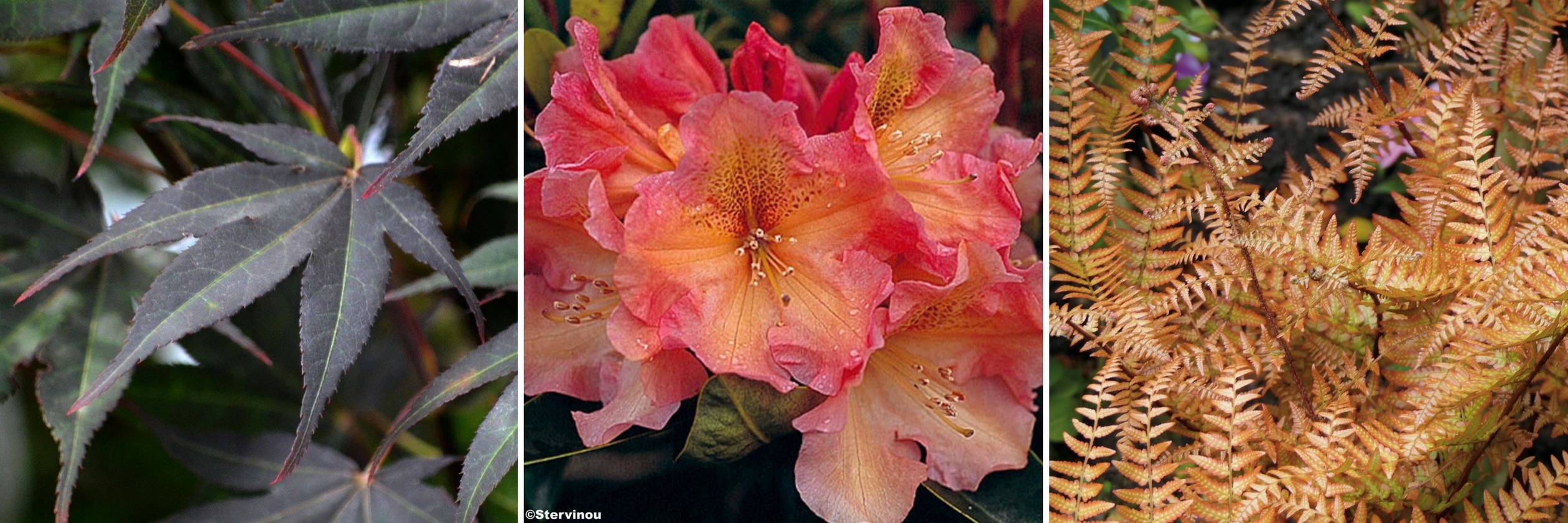 Erable du Japon ‘Atropurpureum’ – Rhododendron ‘Olga’ – Dryopteris erythrosora