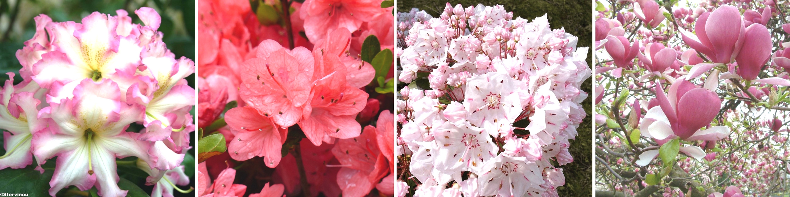 Rhododendron ‘Melrose Flash’ – Azalée du Japon ‘Rex’ – Kalmia latifolia ‘Opencage’- Magnolia Soulangeana Rustica ‘Rubra ‘