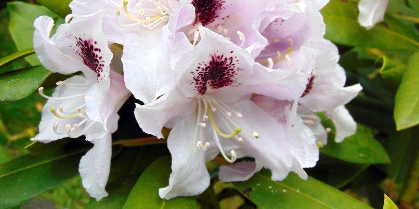 La variété ‘Calsap’ est un rhododendron qui offre en mars-avril une élégante floraison blanche, avec le pétale supérieur maculé de taches rouge bordeaux… Un superbe contraste qui attire le regard ! Il pousse plus rapidement que les autres variétés et atteint jusqu’à 1,30 m de hauteur et d’envergure. De plus, il est très rustique, pouvant supporter jusqu’à – 25 °C, et se montre tolérant aux expositions ensoleillées.
