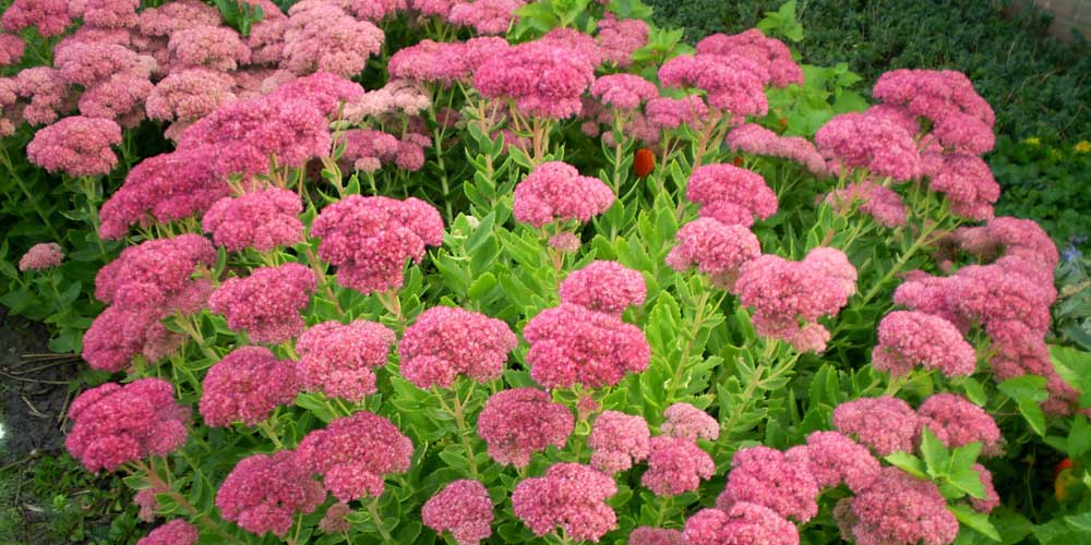 Pour composer un massif ou pour habiller le bord d’un chemin, nous vous invitons plutôt à choisir des sédums hauts et dressés. Ils sont intéressants pour leurs floraisons de fin d’été qui attirent bon nombre de papillons et apportent du volume aux massifs. Ils peuvent mesurer jusqu’à 70 cm de haut, comme le Sedum spectabile ‘Carmen’. Leurs feuilles sont aplaties et larges, parfois caduques.