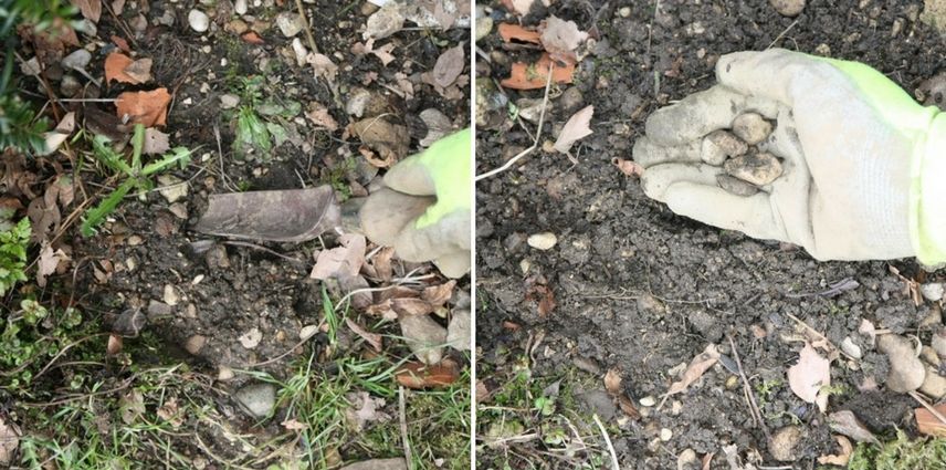 – Etape 1 : Creusez de petits trous d’une profondeur de 2 à 3 cm avec une binette. Espacez les poquets de 25 à 30 cm.