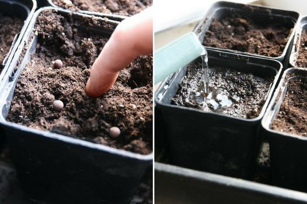 – Etape 2 : Semez 4 à 5 graines dans chaque poquet.