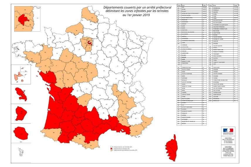 Les termites sont très présents dans le sud-ouest, la Corse et la région parisienne (source : https://www.ecologie.gouv.fr/)