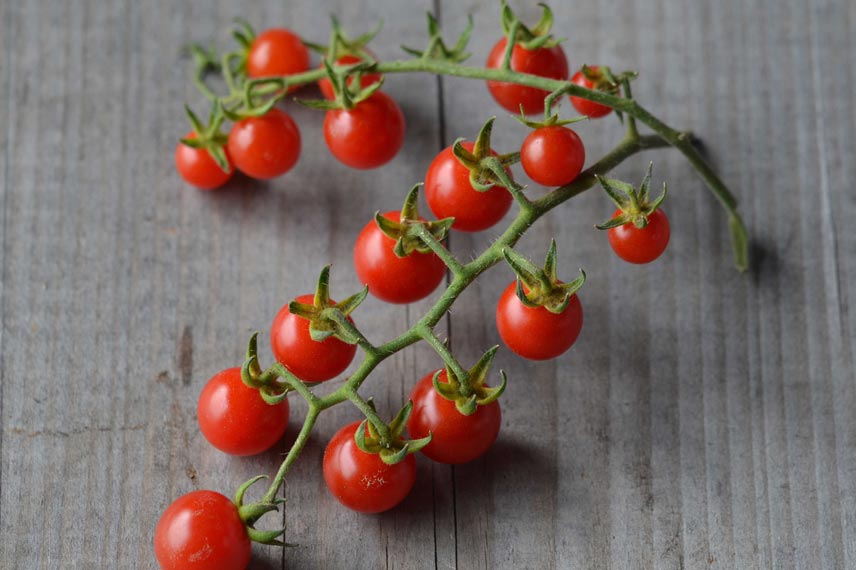 Le goût acidulé et la silhouette incongrue de la tomate cerisette ‘Brin de Muguet’ en font l’alliée parfaite des apéritifs estivaux.