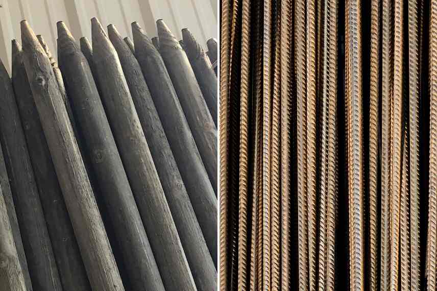Si vous choisissez le bois, il est nécessaire d’avoir un minimum de diamètre de 5 cm, en bois de châtaignier ou une essence imputrescible (en aucun cas de bois traité qui risquerait de contaminer le sol).