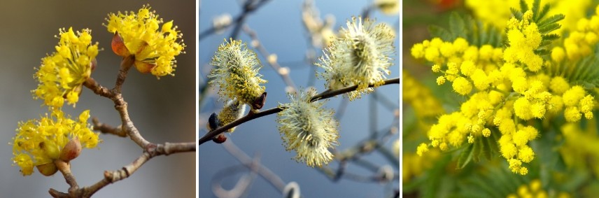 Le Cornouiller mâle, le Mimosa ou un simple Saule marsault mais aussi le lierre, les lilas, le Philadelphus, les spirées, …