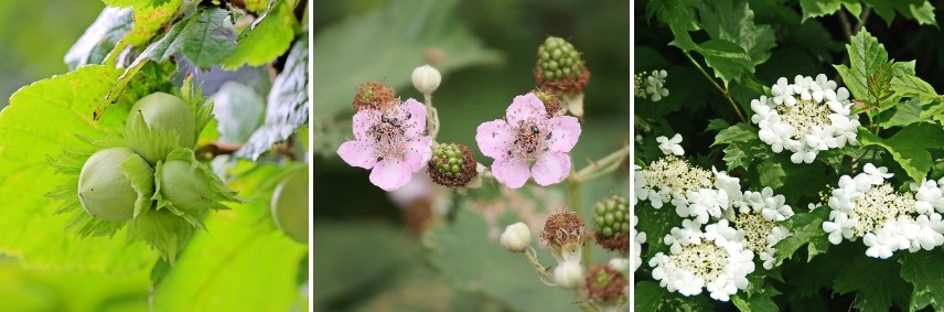 Noisetier, Viorne, Ronce, Sureau, Aubépine, Prunellier, …
