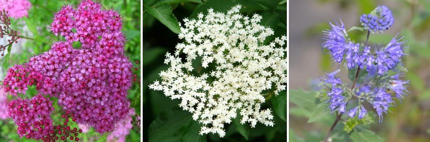 La Spirée du Japon, le Sureau noir, le Troène de Californie, le Caryopteris, …