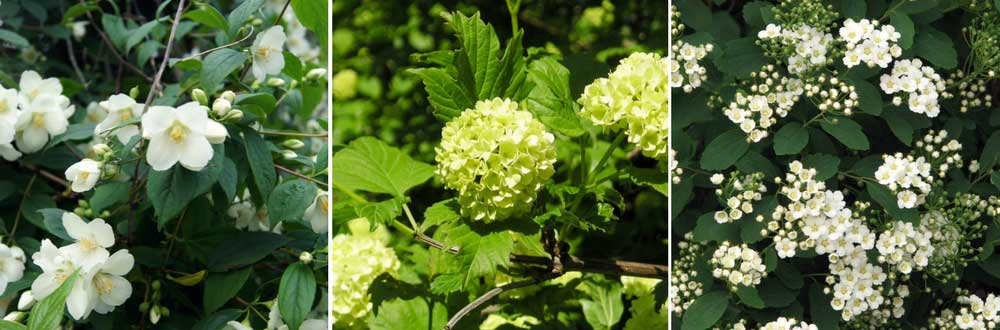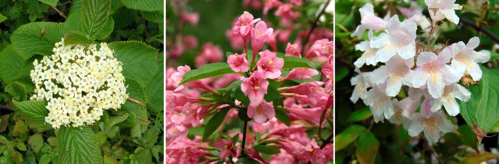 Les fleurs blanc rosé et très parfumées des viornes créent un effet doux et romantique. Choisissez le Viburnum x bodnantense, à la floraison hivernale rose pâle et agréablement parfumée ! Plantez le Viburnum lantana à l’aspect très délicat aux côtés de Kolkwitzias ou de Weigelias, deux arbustes à l’impressionnante floraison printanière blanche ou rose. Pour les accompagner, choisissez des plantes aux couleurs douces, dans les tons blanc, rose, mauve ou bleu pâle. Vous pouvez ainsi planter devant eux quelques vivaces ou bulbes, comme le Geranium macrorrhizum, les Alliums, Camassias ou Muguets.