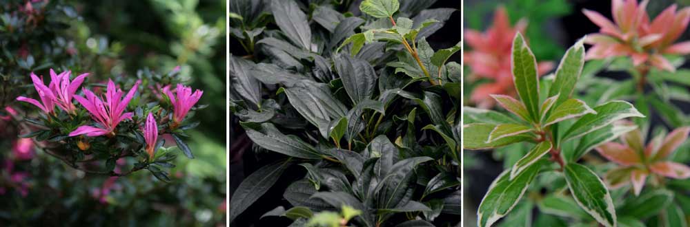 Certaines espèces, comme le Viburnum davidii, apprécient les sols acides : profitez-en pour créer un massif de terre de bruyère ! Choisissez un emplacement à mi-ombre, en sol acide et frais. Vous pouvez composer le massif au pied d’un grand arbre. Si vous disposez d’un magnolia ou d’un conifère assez haut, profitez-en, ils seront parfaits pour protéger le massif du soleil ! Associez vos viburnums à des rhododendrons ou hortensias et plantez à leurs pieds quelques bruyères. Découvrez aussi le superbe feuillage persistant aux tons rouges du Pieris japonica (Andromède).