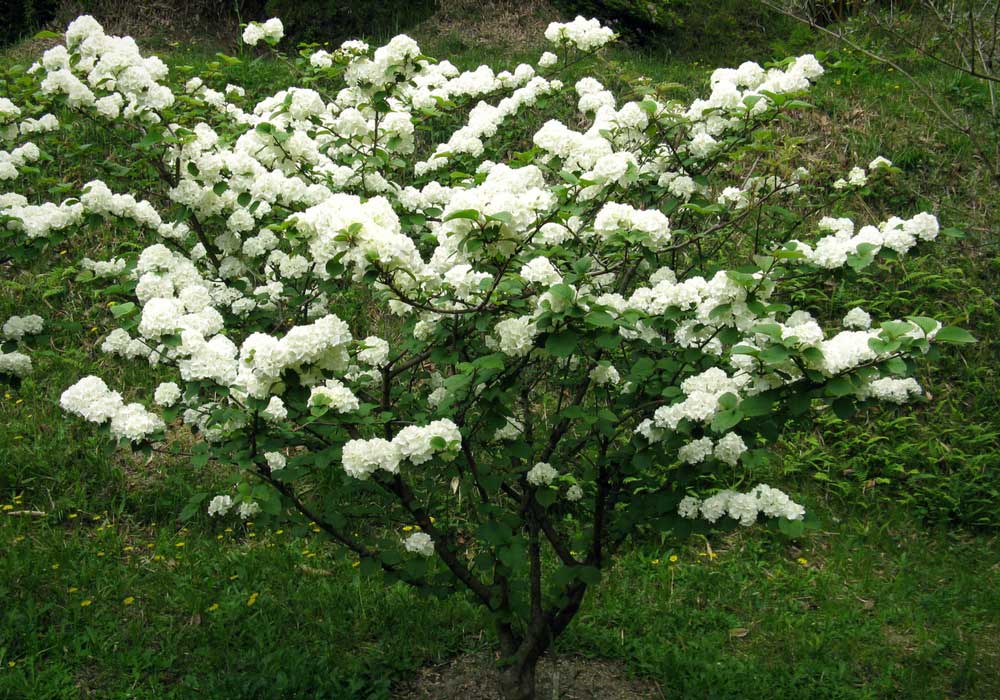 Bien que les viornes se marient très bien à un grand nombre d’arbustes et de fleurs, n’hésitez pas à installer certaines variétés en isolé, par exemple au milieu d’une pelouse. C’est ce que nous vous conseillons pour le Viburnum plicatum ou le Viburnum opulus ‘Roseum’. Leur floraison est si spectaculaire qu’ils méritent d’être plantés de façon isolée ! Le port architecturé de Viburnum plicatum ressortira ainsi beaucoup mieux ! Vous pouvez aussi les mettre en valeur en disposant juste quelques plantes couvre-sol au pied, par exemple un tapis de pervenches, ou des bulbes.