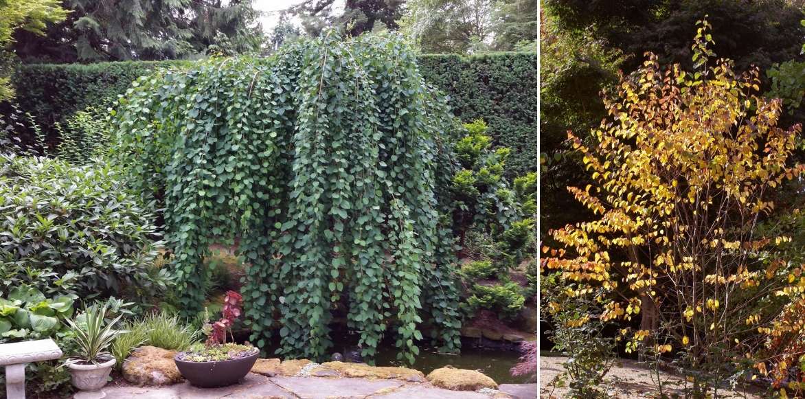 Cercidiphyllum japonicum ‘Pendulum’ en situation / Superbes couleurs automnales du Cercidiphyllum japonicum