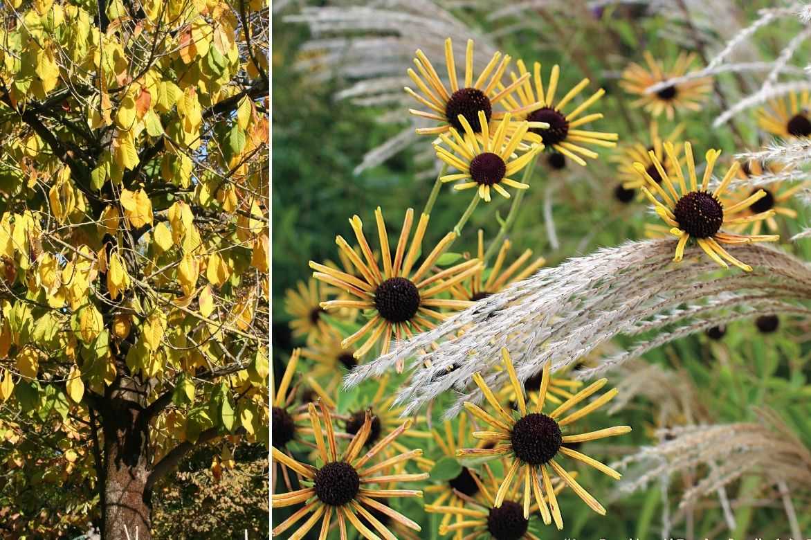 A l’automne, ses feuilles aux flamboiements dorés répondront aux Cotonéasters ou autres arbres à fruits décoratifs comme les Amélanchiers, les Callicarpas et aux belles coloration des feuillages des Cotinus, des acers, d’un arbre à caramel, d’un chêne écarlate, des cornouillers du Japon ou encore d’un Fusain.