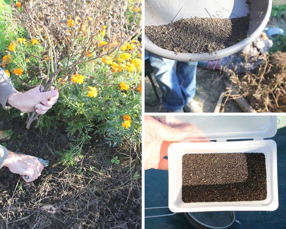 En cas de récolte plus importante, couper les plants secs en entier, tamiser puis ventiler pour séparer les déchets des semences. Conserver les semences dans des récipients non hermétiques.