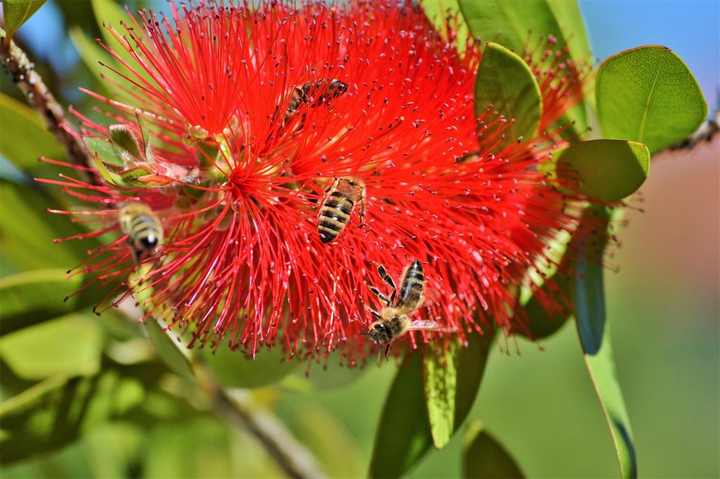 - Le callistemon ou “Rince bouteille” offre une floraison estivale originale en forme de goupillons,