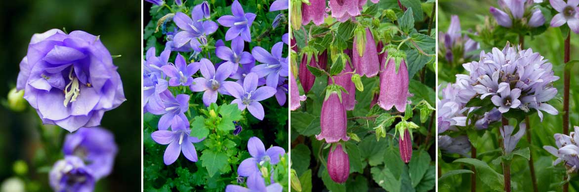 - Nos fiches conseil : 6 campanules à fleurs bleu violet, campanules à fleurs roses, 6 campanules blanches