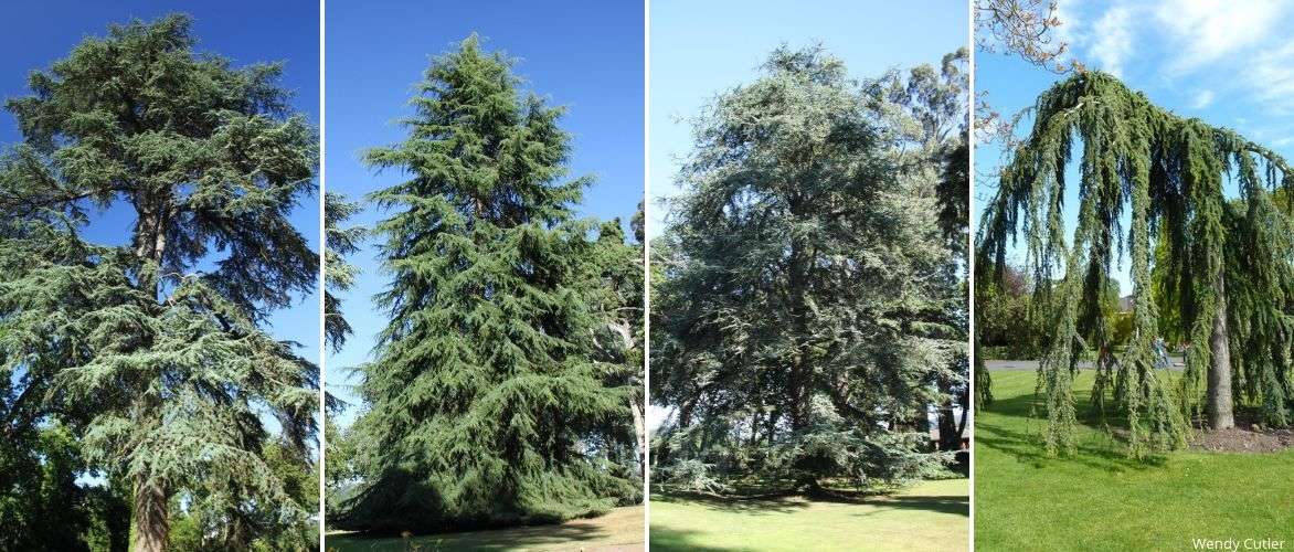 Quelques cèdres : Cedrus libani, Cedrus deodara, Cedrus atlantica et Cedrus libani atlantica Pendula