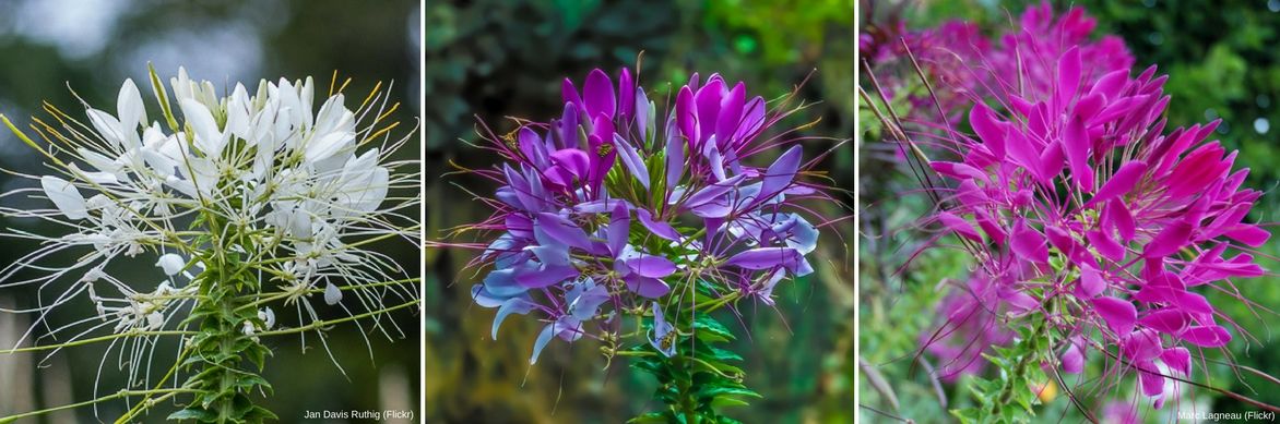 De la Cleome spinosa appelée aussi Cléome épineuse (ou encore Cléome hassleriana), à la cléome blanche ou au Cléome ‘Senorita Rosalita’ aux belles grappes rose parme, la Cléome est indispensable pour apporter de la hauteur et de la légèreté dans les massifs.
