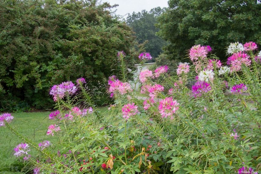 Les cléomes sont idéalement assortis en hauteur aux Verveines de Buenos Aires, cosmos, Pavots d’Orient, d’autres fleurs estivales de haute taille avec lesquelles ils forment de beaux contrastes de formes florales.